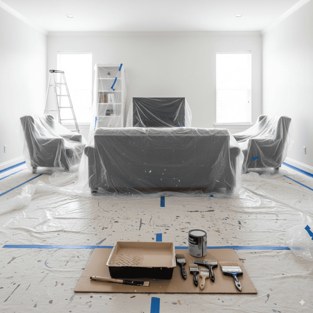 Protección completa de mobiliario, lijado y reparación de superficies, aplicación de imprimaciones específicas. Cada paso es crucial para el resultado final.